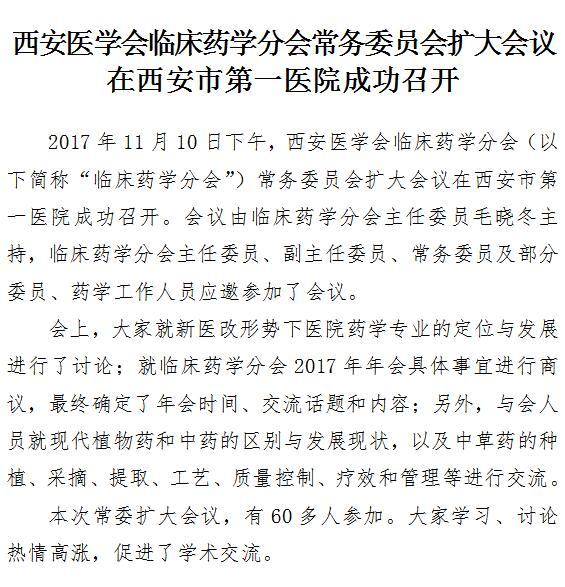 西安医学会临床药学分会常务委员会扩大会议在21点游戏攻略站 成功召开