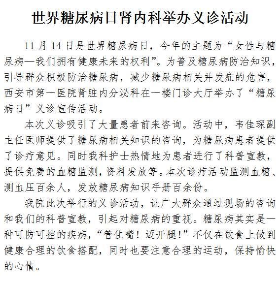 世界糖尿病日肾内科举办义诊活动