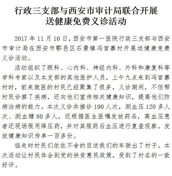 行政三支部与西安市审计局联合开展送健康免费义诊活动