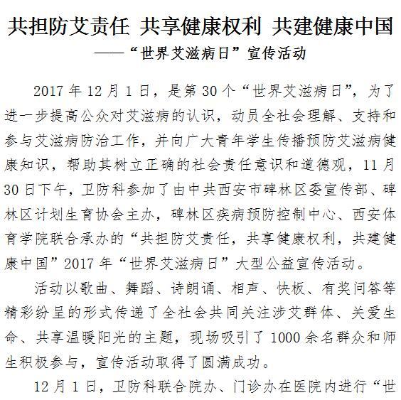 共担防艾责任 共享健康权利 共建健康中国 ——“世界艾滋病日”宣传活动