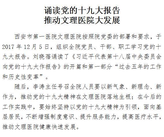 诵读党的十九大报告 推动文理医院大发展