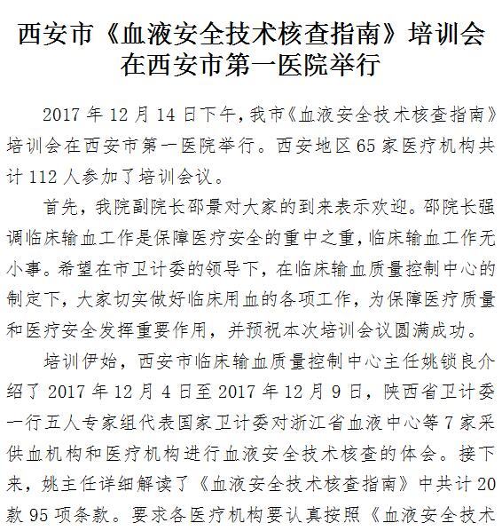 西安市《血液安全技术核查指南》培训会在21点游戏攻略站 举行