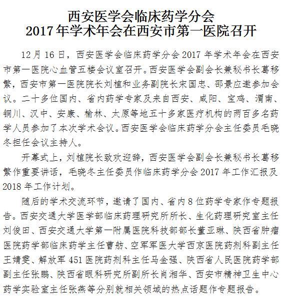 西安医学会临床药学分会2017年学术年会在21点游戏攻略站 召开