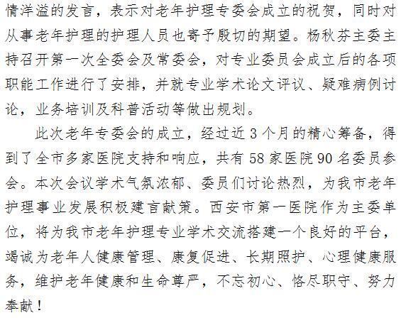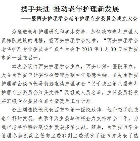 携手共进 推动老年护理新发展 ——暨西安护理学会老年护理专业委员会成立大会