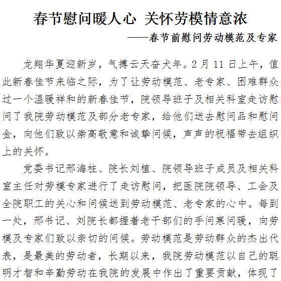 春节慰问暖人心 关怀劳模情意浓 ——春节前慰问劳动模范及专家