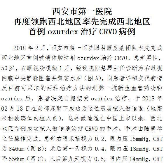 21点游戏攻略站 再度领跑西北地区率先完成西北地区首例ozurdex治疗CRVO病例