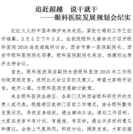追赶超越 说干就干 ——眼科医院发展规划会纪实