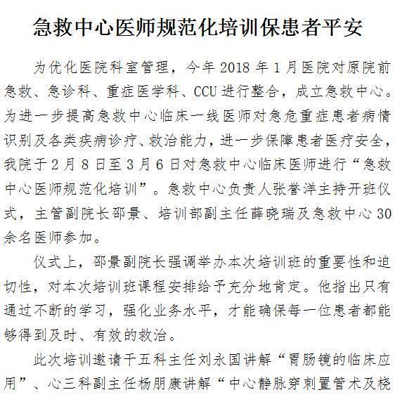 急救中心医师规范化培训保患者平安