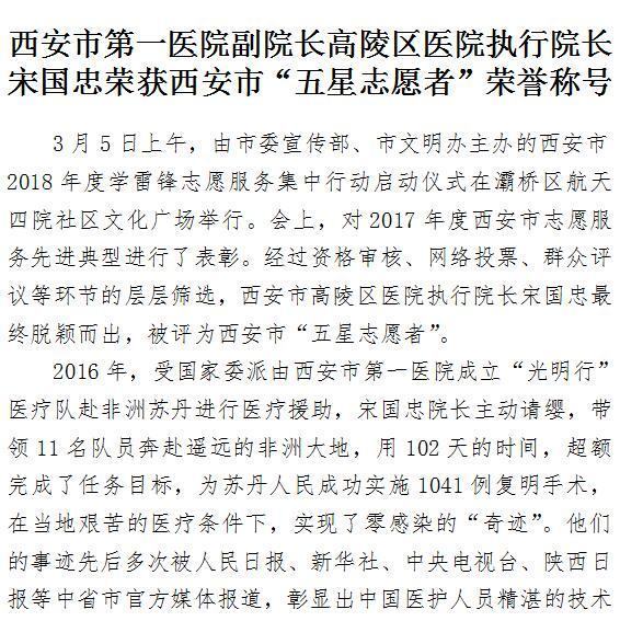 21点游戏攻略站 副院长高陵区医院执行院长宋国忠荣获西安市“五星志愿者”荣誉称号