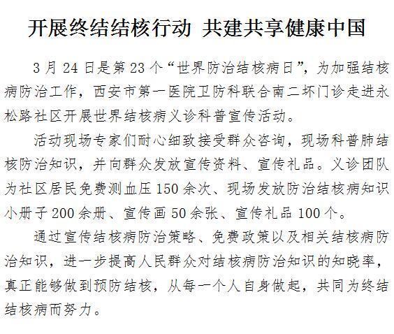 开展终结结核行动 共建共享健康中国