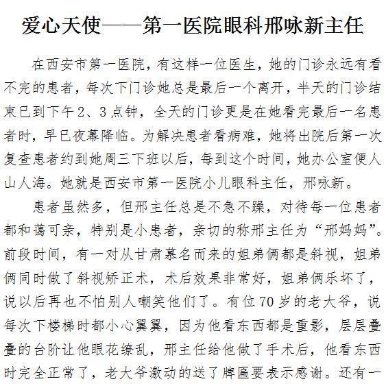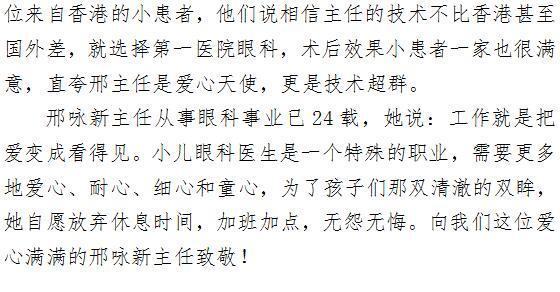 爱心天使 ——第一医院眼科邢咏新主任
