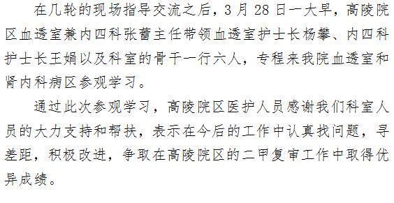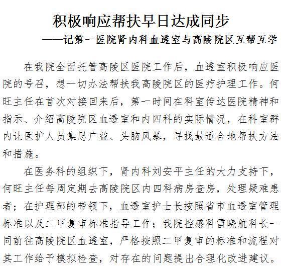 积极响应帮扶早日达成同步 ——记第一医院肾内科血透室与高陵院区互帮互学