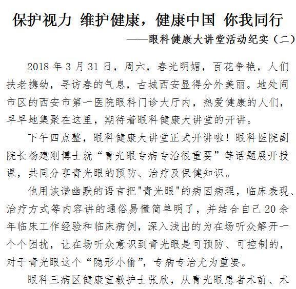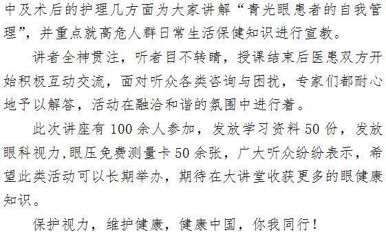 保护视力 维护健康,健康中国 你我同行 ——眼科健康大讲堂活动纪实(二)
