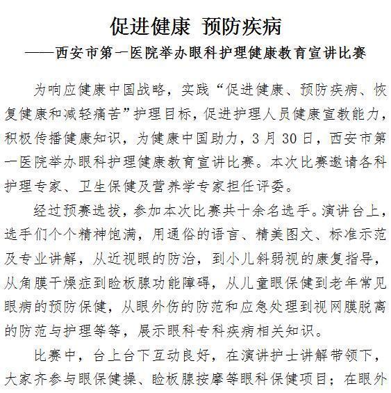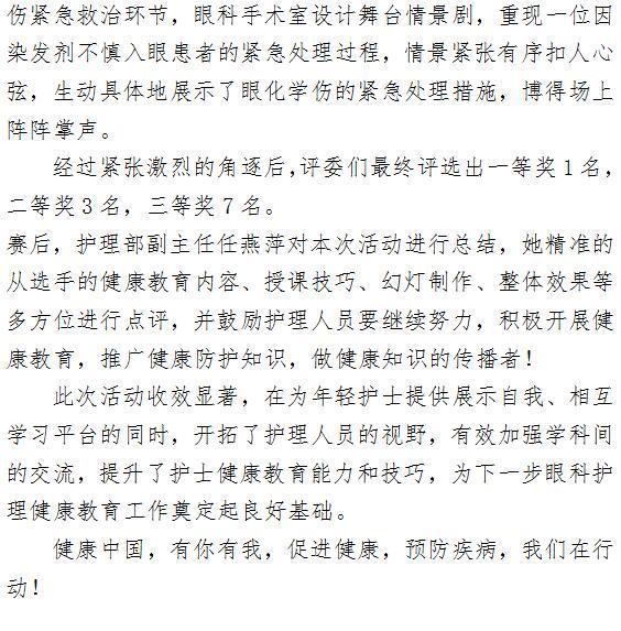促进健康 预防疾病 ——21点游戏攻略站 举办眼科护理健康教育宣讲比赛