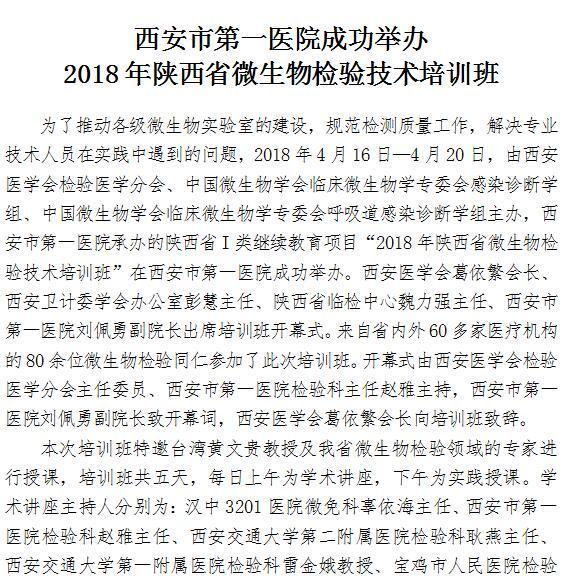 21点游戏攻略站 成功举办2018年陕西省微生物检验技术培训班