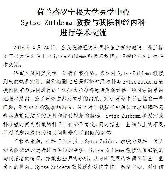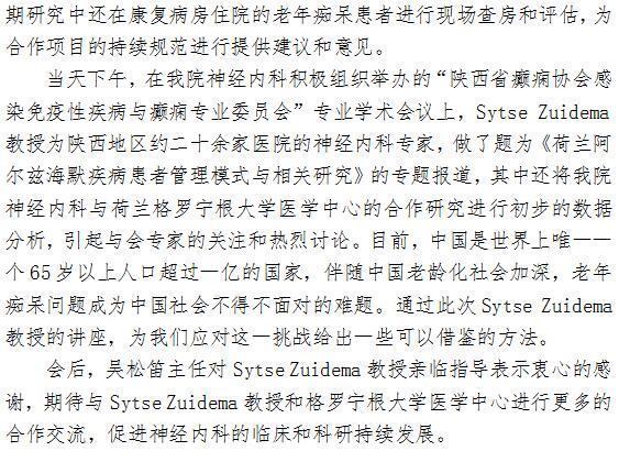 荷兰格罗宁根大学医学中心Sytse Zuidema教授与21点游戏攻略站 神经内科进行学术交流
