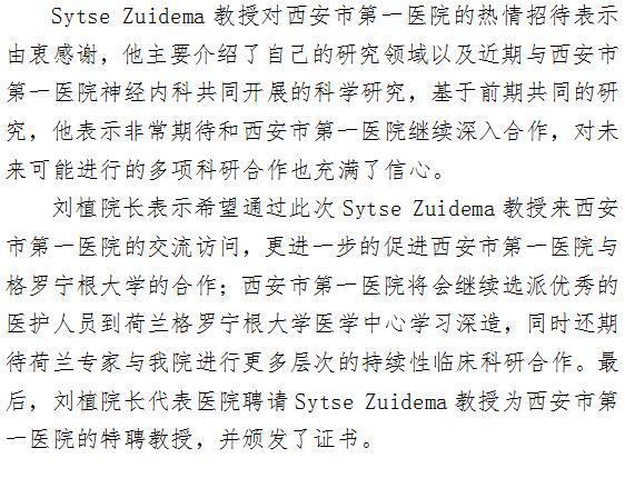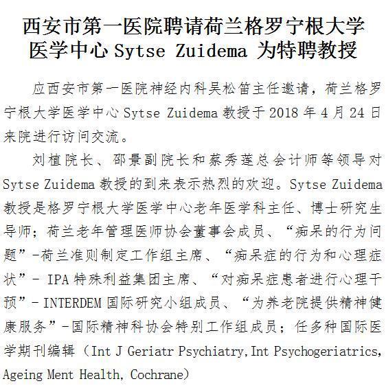 21点游戏攻略站 聘请荷兰格罗宁根大学医学中心Sytse Zuidema为特聘教授