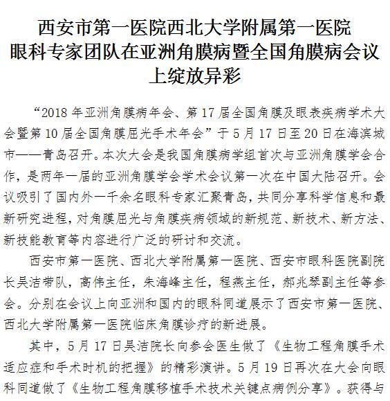 21点游戏攻略站 西北大学附属医院眼科专家团队在亚洲角膜病暨全国角膜病会议上绽放异彩
