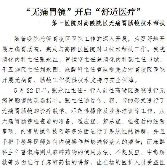 “无痛胃镜”开启“舒适医疗” ——第一医院对高陵院区无痛胃肠镜技术帮扶
