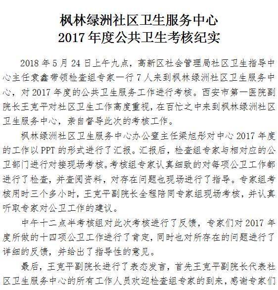 枫林绿洲社区卫生服务中心 2017年度公共卫生考核纪实