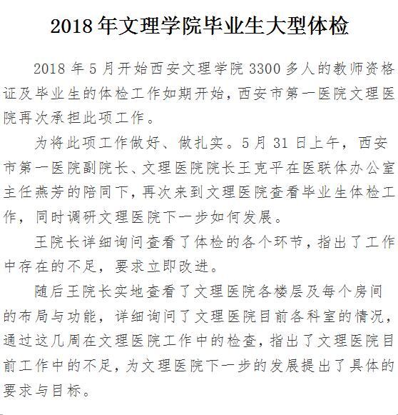 2018年文理学院毕业生大型体检