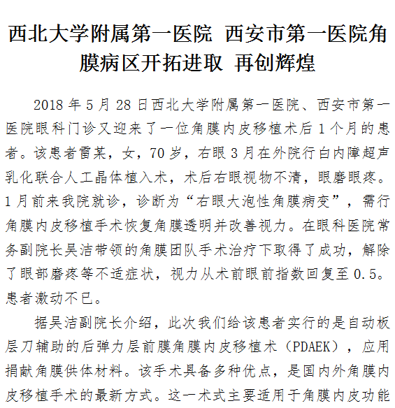 西北大学附属第一医院 21点游戏攻略站 角膜病区开拓进取 再创辉煌