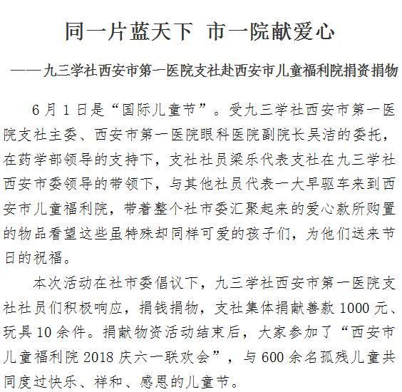 同一片蓝天下 市一院献爱心 —九三学社21点游戏攻略站 支社赴西安市儿童福利院捐资捐物