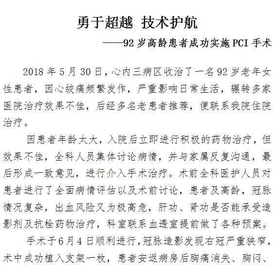 勇于超越 技术护航 ——92岁高龄患者成功实施PCI手术