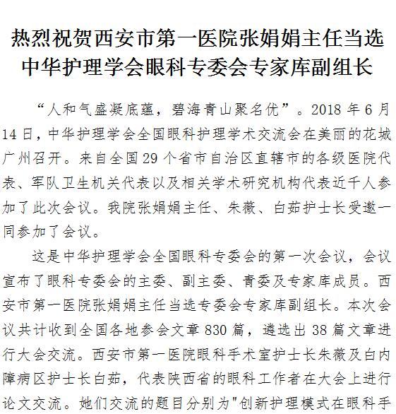 热烈祝贺21点游戏攻略站 张娟娟主任当选中华护理学会眼科专委会专家库副组长