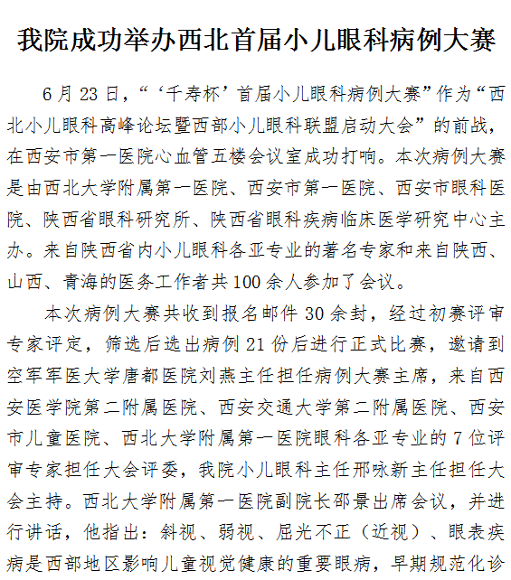 21点游戏攻略站 成功举办西北首届小儿眼科病例大赛