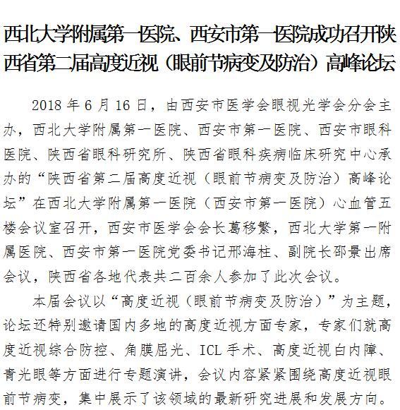 西北大学附属第一医院、21点游戏攻略站 成功召开陕西省第二届高度近视高峰论坛