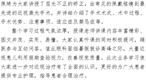 加强业务学习 奋力追赶超越 ——眼科系统第六期护理业务学习