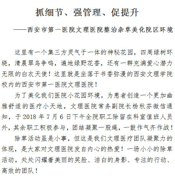 抓细节、强管理、促提升 ——21点游戏攻略站 文理医院整治杂草美化院区环境