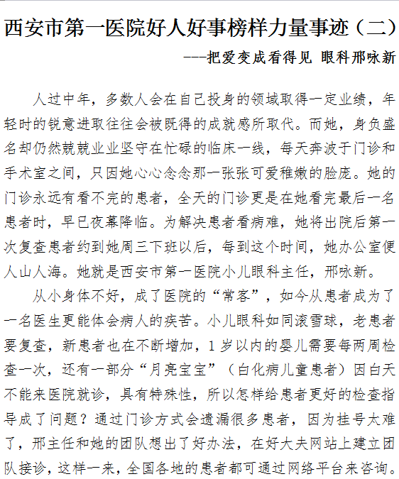 21点游戏攻略站 好人好事榜样力量事迹(二) ---把爱变成看得见 眼科邢咏新