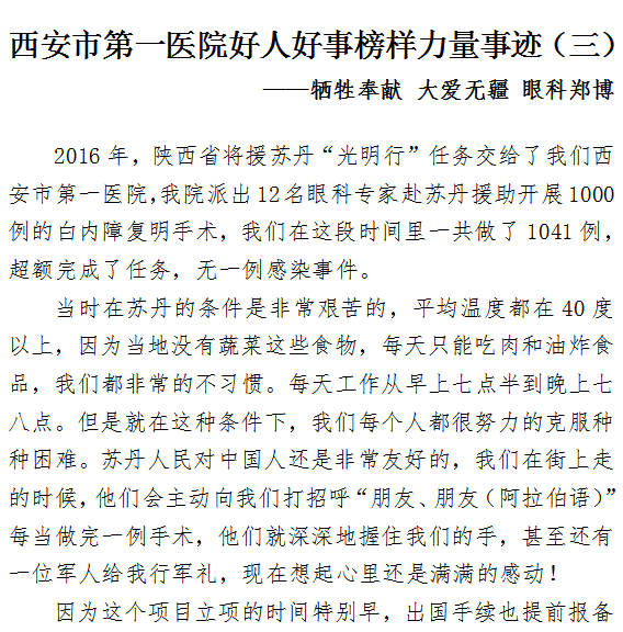 21点游戏攻略站 好人好事榜样力量事迹(三) ——牺牲奉献 大爱无疆 眼科郑博