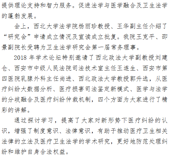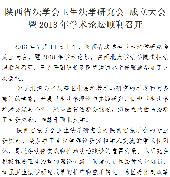 陕西省法学会卫生法学研究会 成立大会暨2018年学术论坛顺利召开