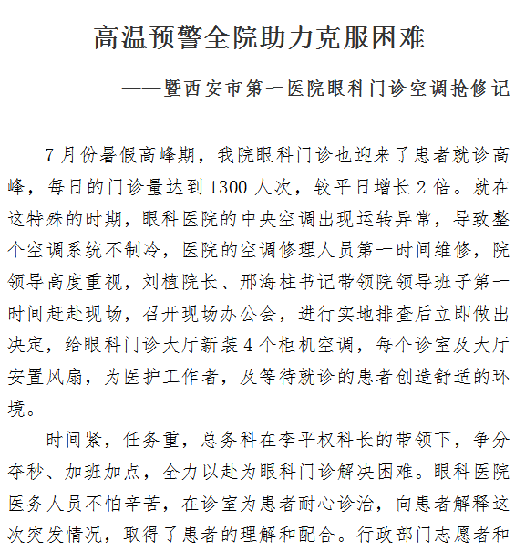高温预警全院助力克服困难 ——暨21点游戏攻略站 眼科门诊空调抢修记