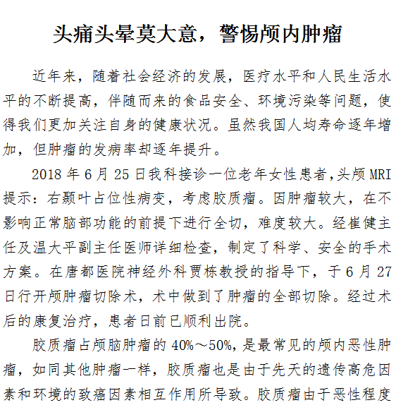 头痛头晕莫大意,警惕颅内肿瘤