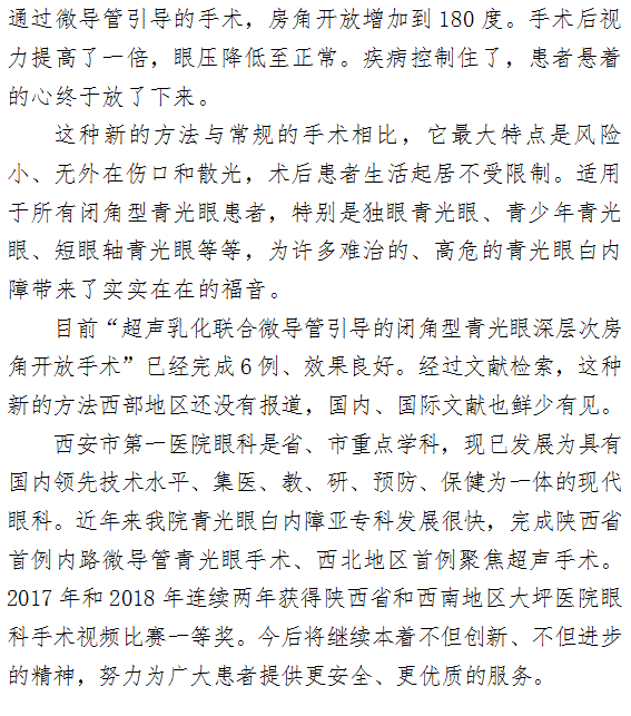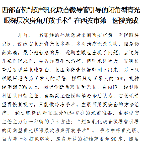 西部首例“超声乳化联合微导管引导的闭角型青光眼深层次房角开放手术”在一院完成