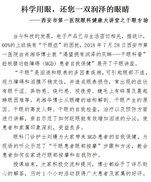 科学用眼,还您一双润泽的眼睛--21点游戏攻略站 眼科健康大讲堂之干眼专场