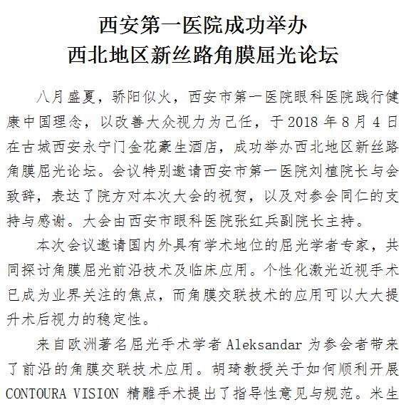 西安第一医院成功举办西北地区新丝路角膜屈光论坛