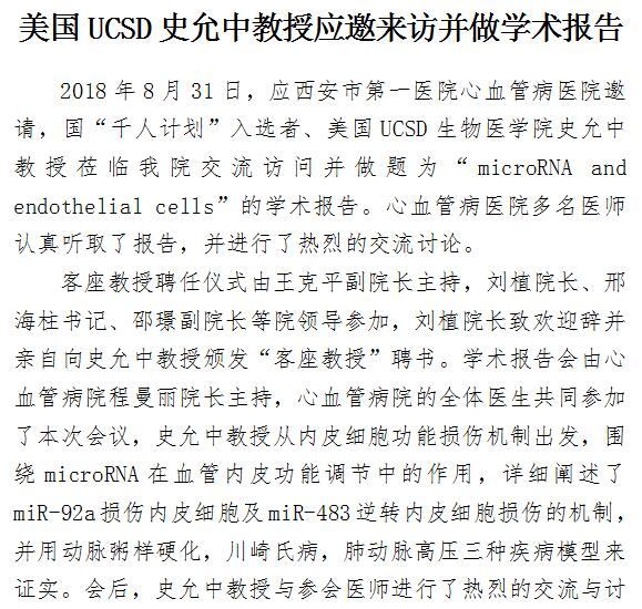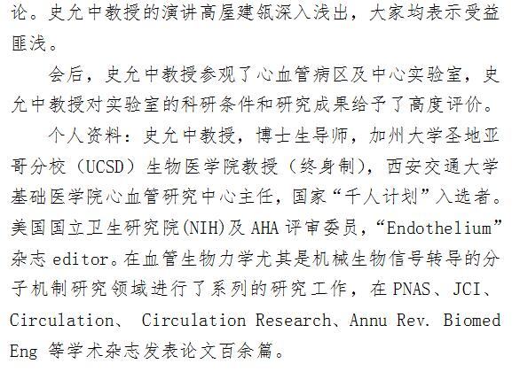 美国UCSD史允中教授应邀来访并做学术报告