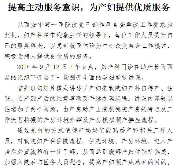 提高主动服务意识,为产妇提供优质服务