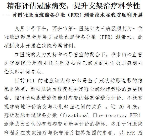 精准评估冠脉病变,提升支架治疗科学性---首例冠脉血流储备分数(FFR)测量技术在21点游戏攻略站 顺