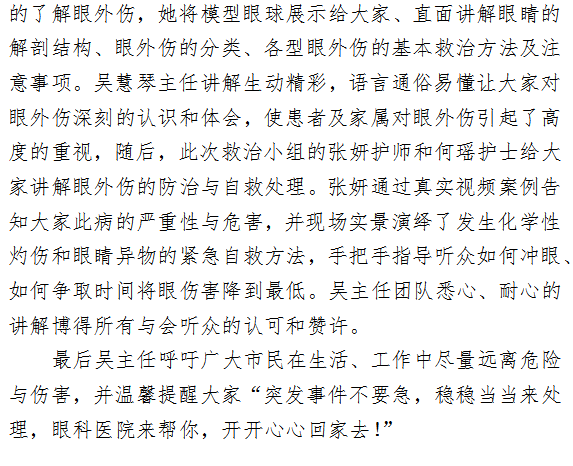 “不要让眼外伤成为意想不到的眼睛杀手” ——眼科医院成功举办“健康知识大讲堂”