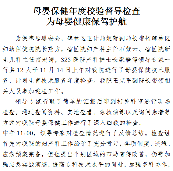 母婴保健年度校验督导检查为母婴健康保驾护航
