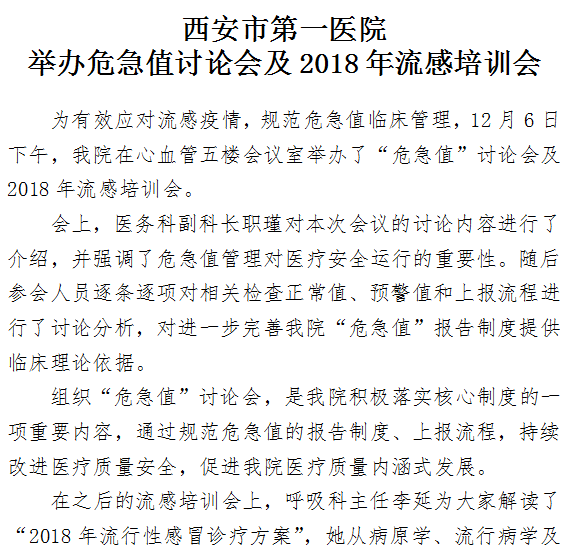 21点游戏攻略站 举办危急值讨论会及2018年流感培训会