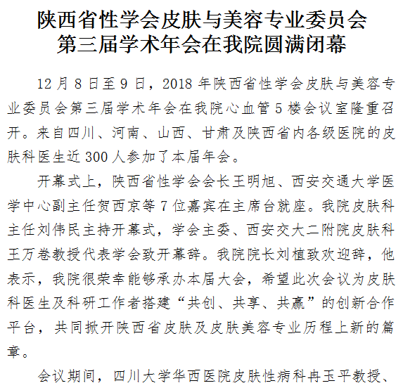 陕西省性学会皮肤与美容专业委员会第三届学术年会在21点游戏攻略站 圆满闭幕