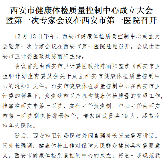 西安市健康体检质量控制中心成立大会暨第一次专家会议在21点游戏攻略站 召开