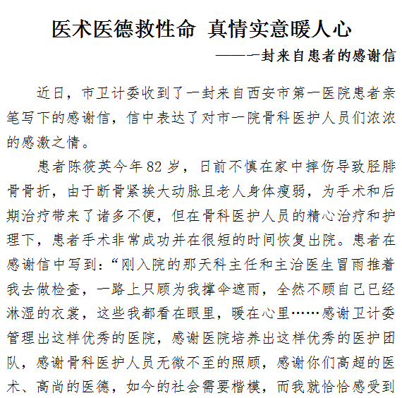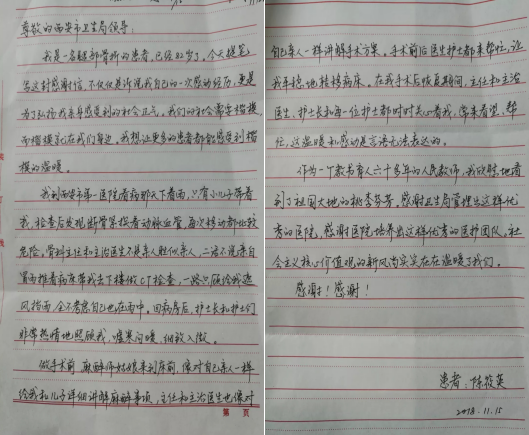 医术医德救性命 真情实意暖人心 ——一封来自患者的感谢信